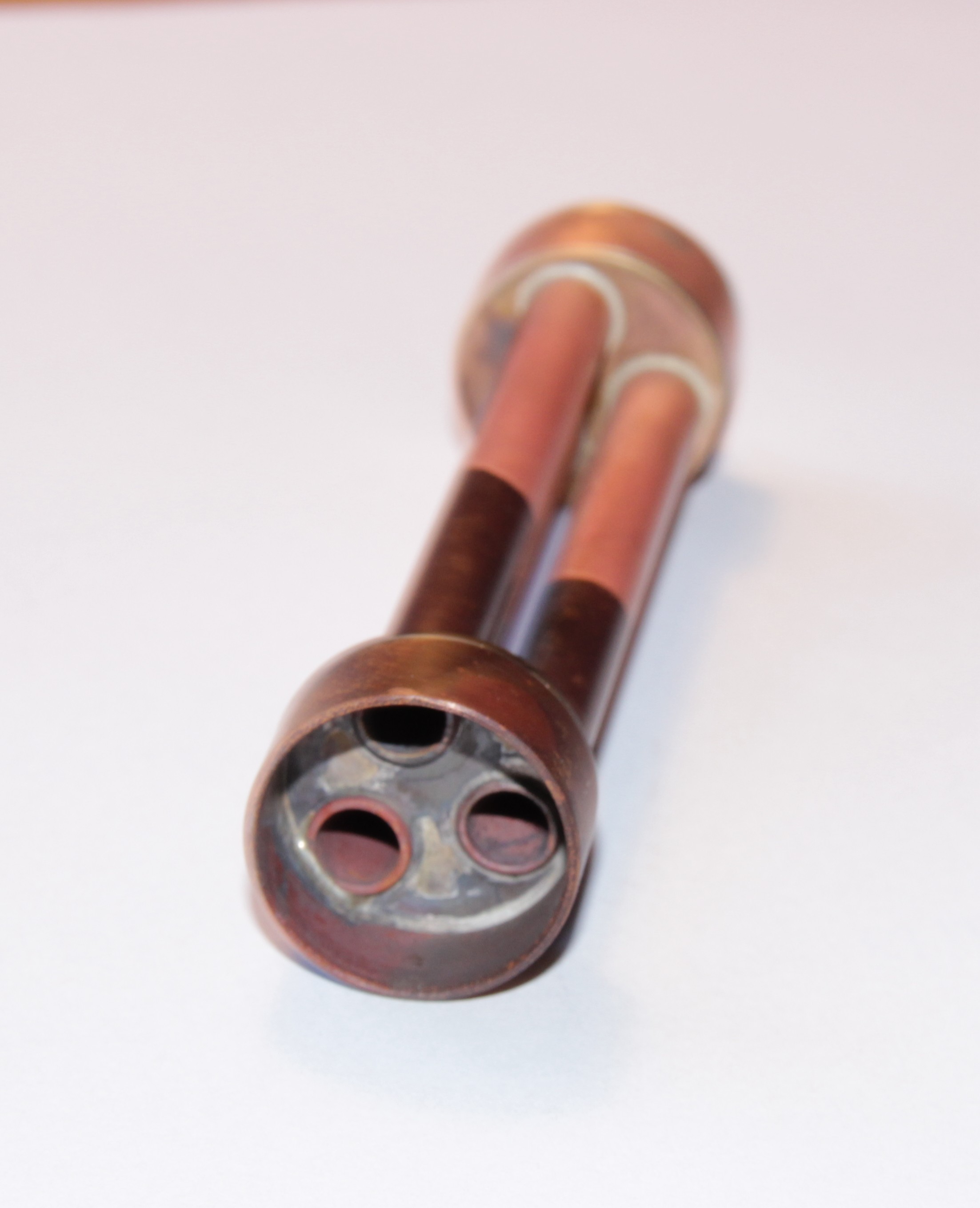 Als mir vor einigen Jahren klar wurde, welche Bedeutung der separate Kondensator für die Weiterentwicklung der Dampfmaschine gehabt hat, habe ich ein Modell der ersten Watt’schen Versuchsanordnung gebaut, etwa in 1/3 der Originalgröße. Bild @fig:DetKon-3 zeigt den Kondensator im Rohbau, in Bild @fig:DetKon-4 sieht man auch die Luftpumpe, das fertige Modell ist in Bild @fig:DetKon-5 zu sehen.