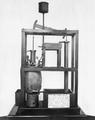 Dieses Bild findet sich u.a. in dem 1886 erschienen Werk von Robert H. Thurston »A History of the Growth of the Steam-Engine«. Es zeigt den Kondensator G, die nasse Luftpumpe K, den Zylinder C, den Kolben D mit hohlgebohrter Kolbenstange, das Belastungsgewicht E und den Kessel A. Der Dampf aus dem Kessel wird über Rohrleitungen beiden Enden des Zylinders zugeführt, Hähne dienen zum Öffnen bzw. Schliessen. Ein dritter Hahn F stellt die Verbindung zum Kondensator her.